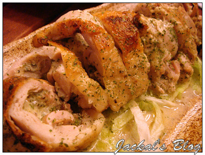 這是我們加點的『香草乳酪雞腿捲』,肉的鮮甜與乳酪香的口感,好吃