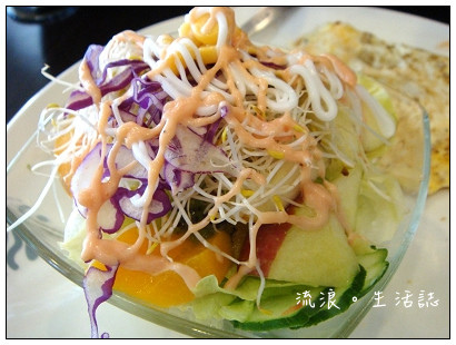 水果生菜沙拉,流浪建議沙拉可以再少一點點,蔬果的口感會更明顯