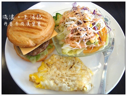 這就是丹麥牛肉漢堡,丹麥的酥漢堡皮配上厚厚的牛肉排及生菜起司,好吃唷!