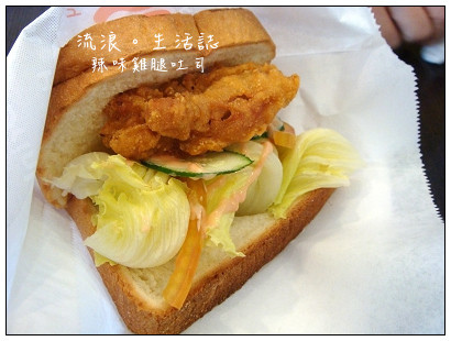 咔啦雞腿吐司:厚片吐司一片加上半塊咔啦雞腿排,好吃但份量有點少
